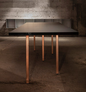 Table FIVE_ in een exclusieve luxe editie met bronzen poten en walnoten tafelbladen.