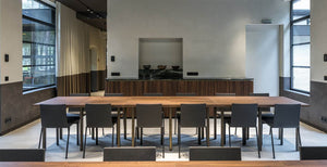 Dit atypische tafelconcept is een van de eerste producten van B Brand. Table FIVE lijkt op een handig doe-het-zelfpakket dat zichzelf in verschillende configuraties toepast. De poten kunnen in verschillende posities worden geplaatst dankzij een ingenieus montagesysteem. Handig aan te passen aan capaciteit, functie of elektriciteitspunten. Mix en match met zwarte of gekleurde poten naar eigen smaak of ontwerp. Tafel FIVE werd gepresenteerd op Salone del Mobile in 2019.