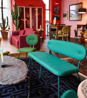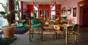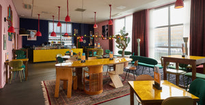 Het café is "eclectisch, een beetje gek en een mengelmoes van high end en low budget", zegt topontwerper Maarten Baas. Inspiratiebron is Baas' eigen woonkamer. Nestel je in een van de banken die hij ontwierp en geniet van alles wat je ziet en proeft.