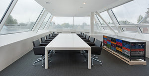 Werkbank en AVL-bureaustoelen in de vergaderruimte op de bovenste verdieping