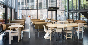 In Café Centraal staan veel bijzondere stoelen van Nederlandse ontwerpers die ook in de collectie van het Centraal Museum zitten. Lees hier meer over de meubels en hun ontwerpers.