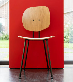 De 101 stoel ontworpen door Maarten Baas is verkrijgbaar met vier verschillende rugleuningen. Dit type stoel brengt een vleugje natuur terug in een ruimte. Door de eenvoud van de strakke lijnen en gladheid past deze stoel in elke omgeving. Gemaakt van multiplex, eiken fineer. De standaard kleur van het frame is zwart.