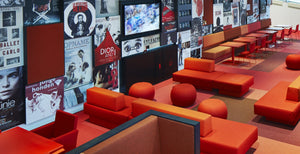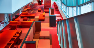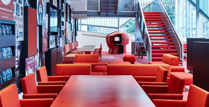 In de foyer van het theater staan verschillende relaxmeubels van Lensvelt-label