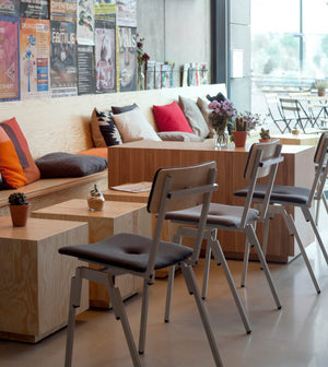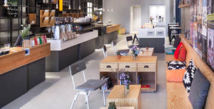 Jeroen Vester: 'Binnen de verschillende elementen van zitmeubilair en interieur lijken de locaties hun eigen sfeer te definiëren, bijvoorbeeld een knusse huiskamersfeer of juist een stedelijke uitstraling. De aftrap in het Oosterdok met de Roasting & Tasting was niet alleen een eerste experiment, maar ook bedoeld als statement. We wilden het nuchtere, Hollandse, ambachtelijke karakter van Coffee Company benadrukken.