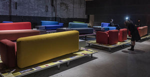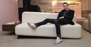 Fabio Novembre_ zittend op de New Balance-bank tijdens DDW 2019, Eindhoven