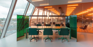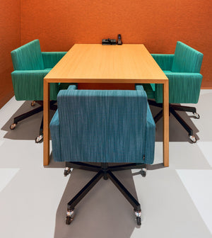 De AVL-bureaustoelen zorgen voor een speelse uitstraling in de vergaderruimte