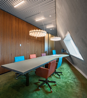 Lensvelt heeft bijgedragen aan de levendige binnenwereld van Forum Groningen door meubilair te leveren dat het diverse karakter van zowel de stad zelf, het gebouw als haar bezoekers weerspiegelt. Verschillende kantoorruimtes zijn uitgerust met opvallend gekleurde AVL Office Chairs en verstelbare Boring Desks. In het imposante atrium staan houten D-Chairs in exclusieve kleuren om in te relaxen en de bovenverdieping is ingericht met comfortabele AVL SPR Cathedra Lounge Chairs om op grote hoogte te genieten van het uitzicht over de stad.
