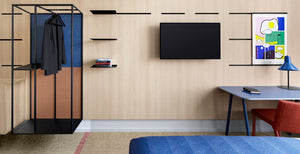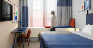i29 maakte het interieurontwerp voor alle 518 hotelkamers, in samenwerking met meubellabel Lensvelt en textielontwerpster Mae Engelgeer. Het concept was om een diversiteit aan kamers te realiseren waar alles draait om ‘thuiskomen’, Comfort en tactiliteit staan centraal door het gebruik van akoestisch verhogende materialen zoals PET vilt en textiel. Elke kamer heeft een bureau en de Felix 141 stoel met een bureaulamp, een comfortabel bed met opbergruimte, een flexibel hangend nachtkastje, een vensterbank met kussens, een pantry en een multifunctionele wand.