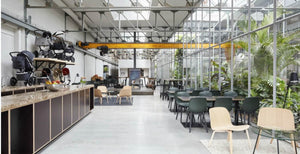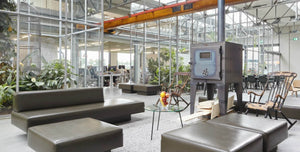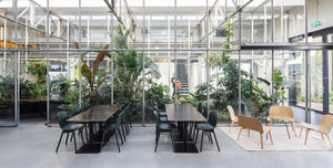 De kantoorruimtes zijn voorzien van de Boring-collectie, die de natuurlijke omgeving nog levendiger maakt met zijn sobere en bescheiden uitstraling. De andere open en lichte kamers van dit voormalige industriële gebouw zijn gevuld met AVL Glyders, W.H. Gispen salontafels en 4000 vergadertafels. De organische kleuren en vormen van alle stukken passen prachtig bij de botanische tuinen en dragen allemaal bij aan deze inspirerende werkruimte.