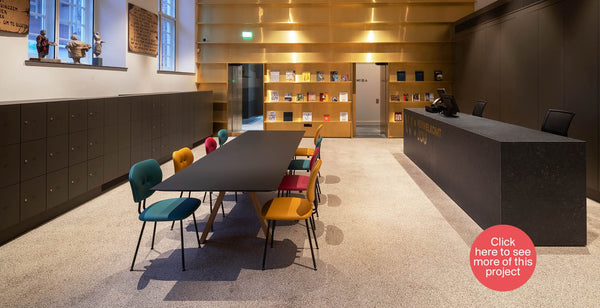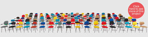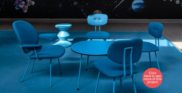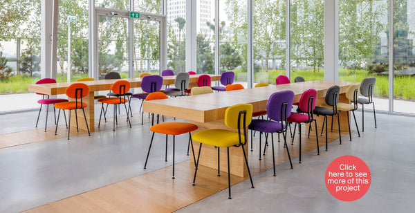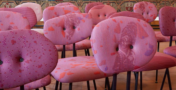 Maarten Baas 101 chairs bij Aidsfonds met frame en stoffering in dezelfde kleur.