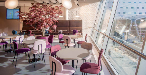 De nieuwe lounge op Eindhoven Airport is uitgerust met MB 101 stoelen in aubergine tinten.