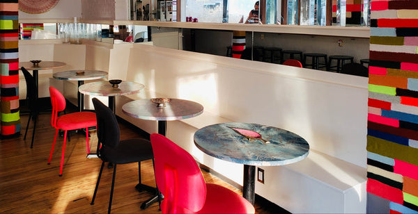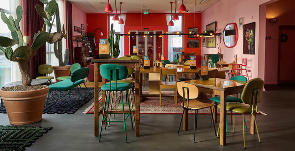 Maarten Baas 101 stoelen in een felle kleurencombinatie bij Tyler The Bar.