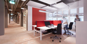 De in hoogte verstelbare optie maakt het mogelijk om het bureau aan te passen aan de gewenste hoogte. Dit kan gemakkelijk worden gecombineerd in één ruimte met de Studio Desk Duo.