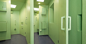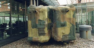De toiletunit heeft de vorm van een grote penis en verbindt het hoofdgebouw met het museum en doorbreekt de glazen doorgang. Terwijl het interieur een lichte tint groen heeft, is de buitenkant bedekt met een camouflageprint in legerstijl die past bij het omliggende museum en de tuinen.