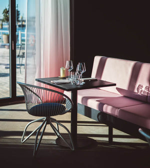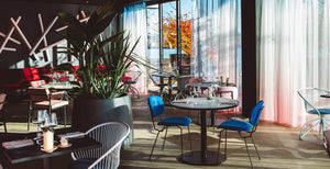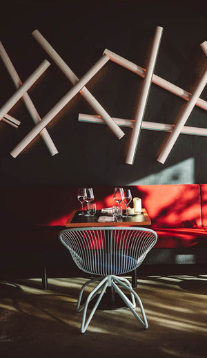 Het restaurant is ingericht door Joeri Horstink van ontwerpstudio Rotganzen. De uitstraling van het restaurant doet denken aan disco meets Miami Vice. Stijlvol en kleurrijk; donkere muren gecombineerd met verschillende soorten stoelen in roze, blauw en wit, zoals de D-Chairs van Lensvelt. Ook de elegante Coquille stoel, ontwikkeld door Powerhouse Company in samenwerking met Lensvelt, misstaat hier niet. De grote open keuken, de lage ruime bar en een kunstwerk van rietjes van Rotganzen zijn echte eyecatchers.