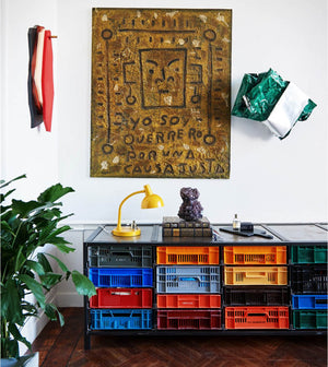 Krattenkast_ door Mark van der Gronden gecombineerd met kleurrijke kunst