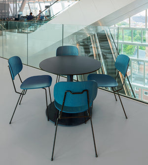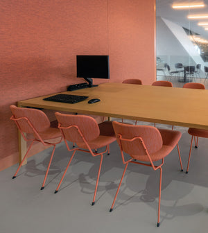 Aangepaste kleuren voor deze gestoffeerde D-stoelen bij Forum Groningen