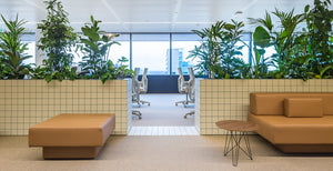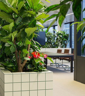 De pauzeruimte maakt gebruik van weelderig groen om ruimtes te verdelen