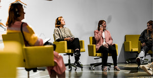 De tentoonstelling 'Grote mensen die ik kende toen ik klein was' was een initiatief van cabaretier Wouter Deprez. De opgefriste AVL Office Chairs speelden een integrale en centrale rol. Het publiek zat comfortabel in deze stoelen om de audiovoorstelling te volgen.