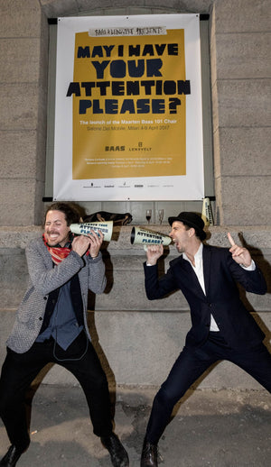 “May I Have Your Attention Please?” was the launch of the Maarten Baas 101 chair, designed by Maarten Baas for Lensvelt. Hans Lensvelt was the first one to get the artist to design a mass product. The result is a series of unique chairs that look like they are all individually hand-drawn. It is one of the bestsellers of Lensvelt.