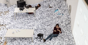 The Milano Design Award is known as the “Oscar of the international interior world”. Lensvelt and Space Encounters won best concept for the presentation of the Boring Collection out of 1600 exhibitors. The jury raved about the clever concept and the courage of Lensvelt to create an anti-design statement on the world’s largest design fair. The grey furniture pieces from the Boring Collection are not particularly striking, they seem to disappear in the interior, so that the focus can be on everything else that matters’. Visual artist duo Lernert & Sander were commissioned to promote the Boring Collection. Not the furniture, but office life itself is given the lead in their campaign. Like the countdown to the last minute before five o'clock, and the paper wad, the universal symbol for boredom at the work floor.