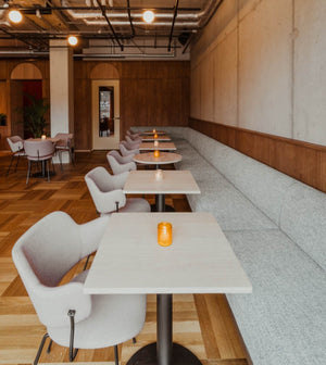 CanCanteen is more than just a hospitality venue; it is a vibrant concept focused on eating, working, playing, and meeting. With an accessible and versatile layout, various spaces are created for working, meeting, and communal dining. The 'modern neighborhood hub' feel reflects the aim to provide a communal meeting place in apartment buildings, where neighbors can strengthen connections amid our busy individual lives.