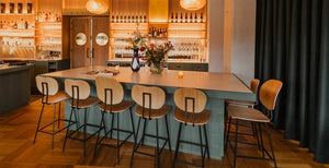 The bar area with Maarten Baas 801 Barstools and Gispen 205 Chairs.