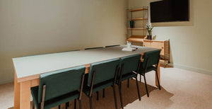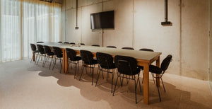 The focus room features custom made conference tables with retro Gerrit Veenendaal Chairs.