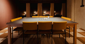Lensvelt supplied the furniture, including the Maarten Baas 101 Chairs and the 801 bar stools, Gispen Chairs and Meetingtables in the restaurant, Gerrit Veenendaal Chairs in the meeting rooms, and the D-chair developed in collaboration with Bureau...,Staat. Custom-made oak meeting tables and a meter-long sofa add to the unique look.