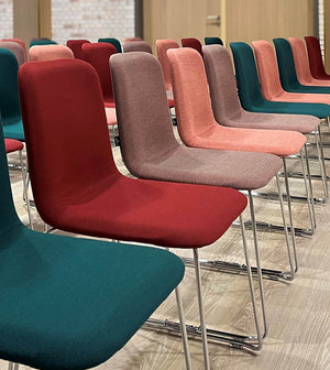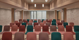 In the auditorium are stackable This Chairs 141 applied that are upholstered in beautiful shades.