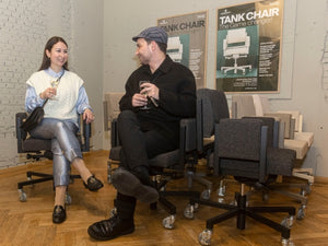 Following a warm welcome at the Tank Station venue by Sanne Schenk and Tommy Kleerekoper, the founders of Tank Design Agency, Pieter Kraaijenbrink, senior project and account manager at Lensvelt, introduced the new Tank Chair and discussed its development and key features.