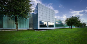 The Lensvelt Warehouse is located parallel to the A27 motorway. Designed by Wiel Arets in 1996, the warehouse consists of a rectangular glass box with a cross-section layout. The façades are constructed from U-profile glass and aluminum, including the massive pivoting emergency exit door. At the special request of Hans Lensvelt, Wiel Arets designed a patio at the center of the building. The entrance is located at the end of this spacious patio on the north side.