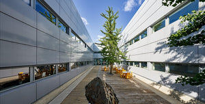 Wiel Arets designed a patio in the middle of the building. The entrance is at the end of this spacious patio on the north side.