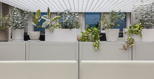 The floor plan of Sony Music places enclosed functions near the core, freeing the views from obstruction and allowing the concrete facade construction to claim the spotlight. Special attention has been given to the lighting system. On top of the grid ceiling, LED strips illuminate the white acoustic spray above it, creating hyper-difuse light below and eliminating shadows.