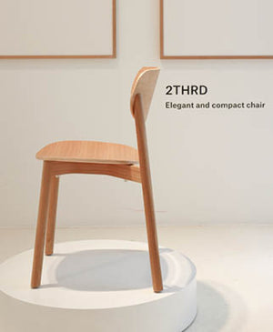 The 2THRD chair gets its name from its unusual size, two-thirds of a "normal" chair. With its compact wooden form, the chair takes up surprisingly little space.