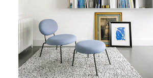 The RNA 041 Ottoman with its sleek and lightweight steel frame in combination with upholstered circular top, the roundness of the shape will create a calming flow in any space it is placed in.