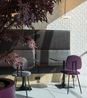 De nieuwe lounge op Eindhoven Airport is uitgerust met MB 101 stoelen in aubergine tinten.