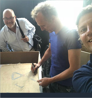 Richard Hutten tekende de eerste schets op een kartonnen doos tijdens een van de eerste meetings met het Schiphol team, CEO Rob Brugge en Lensvelt's senior account manager Pieter Kraaijenbrink, de drijvende kracht achter dit project.